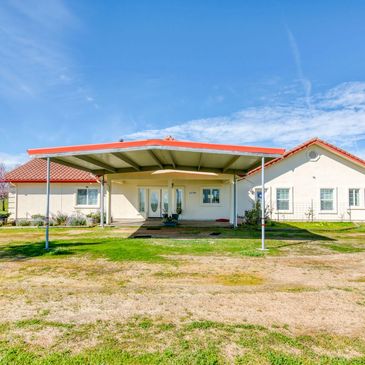 Two carports, extra-large garage, garage storage, newer AC and furnace, two sheds and a small shed by the house, chicken coup, raised beds, irrigation on four acres, oversized leased propane tank, tiled roof, security gate, security system, fenced property